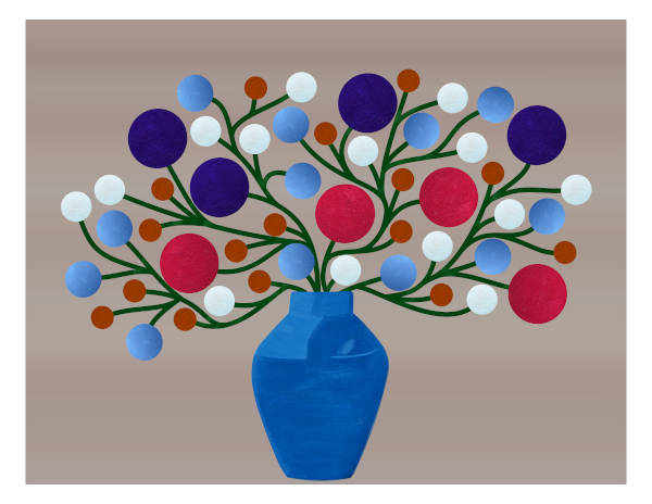 Flowers in Vase – This artwork reimagines a classic floral arrangement through an abstract lens, focusing on and celebrating the simplicity of flower blooms.